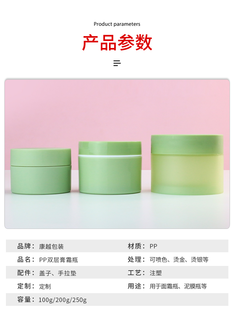 綠色復(fù)活草同款面膜瓶 pp塑料廣口瓶 200g膏霜瓶 清潔泥膜瓶包材